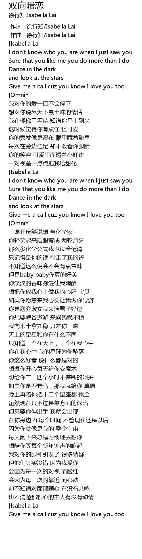 | [00:00.000] | 作词 : 徐行知/Isabella Lai |