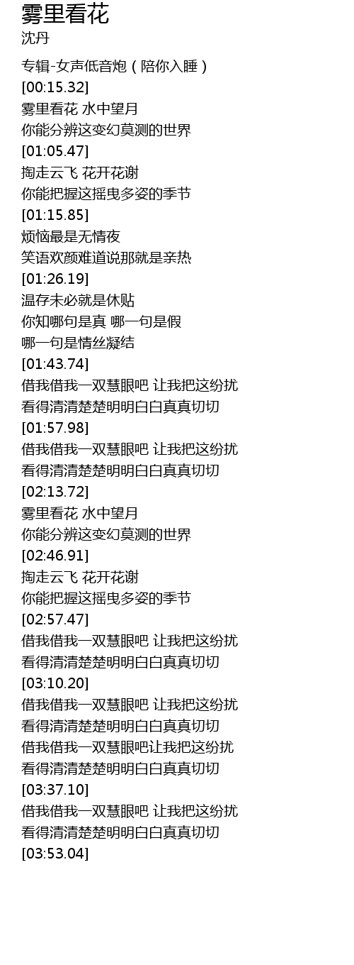 | [03:44.01] | 看得清清楚楚明明白白真真切切 |
