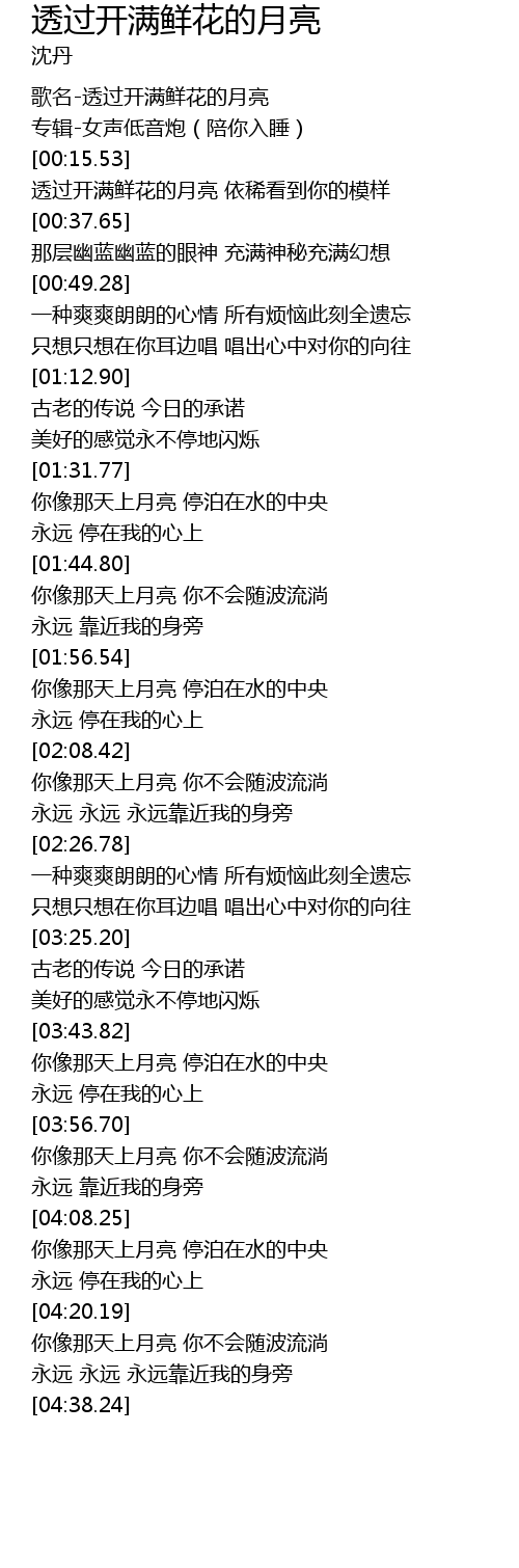 | [00:00.73] | 歌名-透过开满鲜花的月亮 |