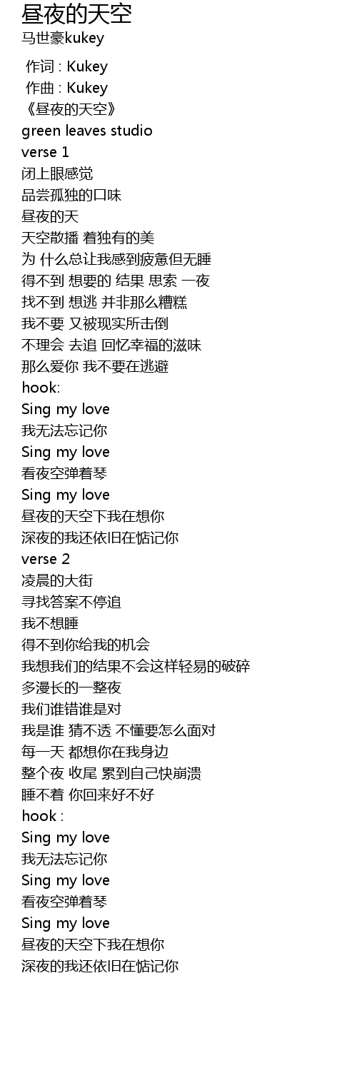 | [01:40.792] | 昼夜的天空下我在想你 |