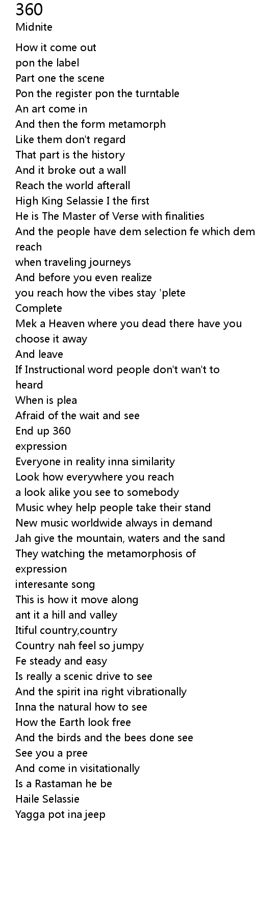 | Jah give the mountain, waters and the sand | |