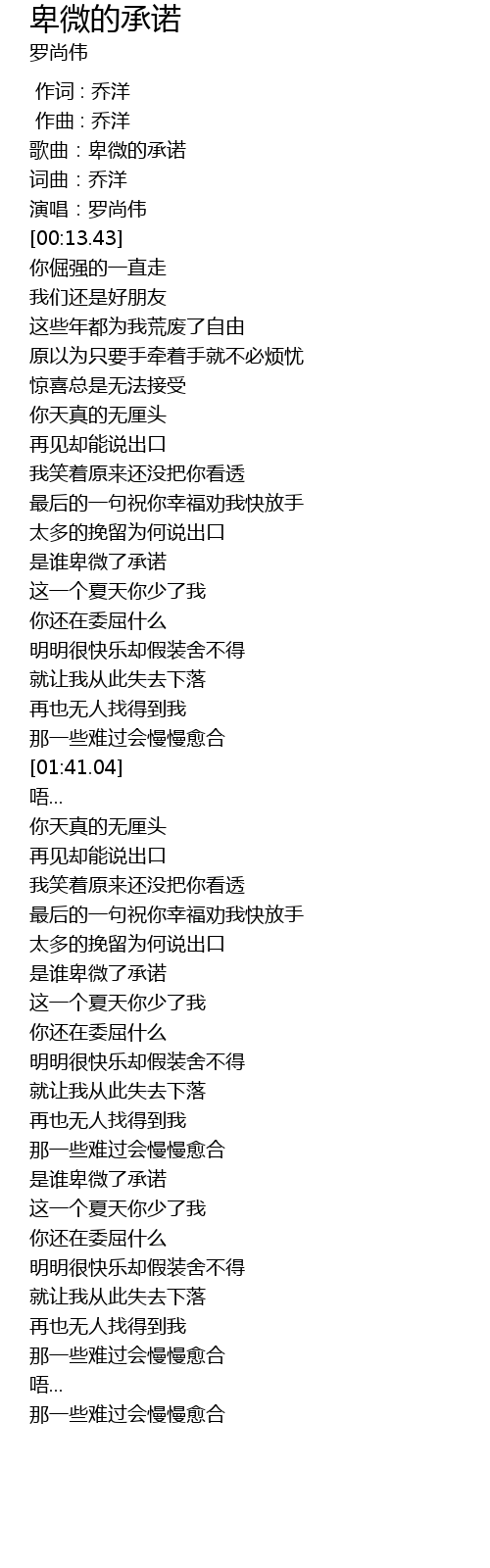 | [00:00.00] | 歌曲:卑微的承诺 |