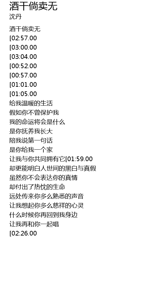 | [03:35.00][02:26.00] | 酒干淌卖无...... |