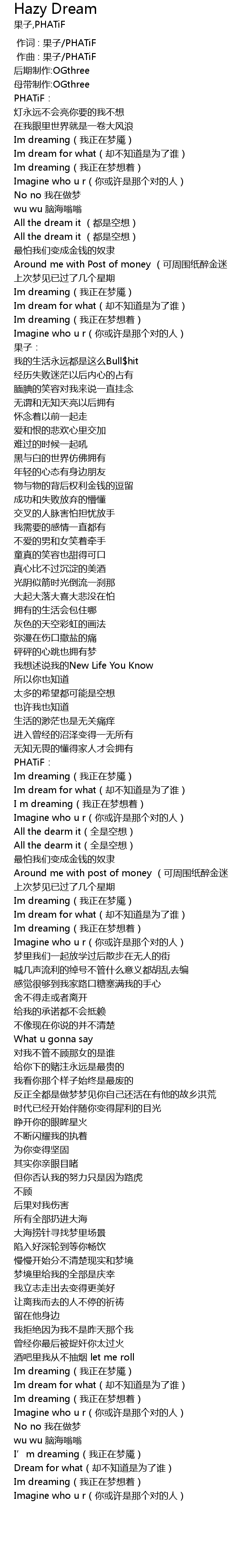 | [02:33.910] | Im dream for what què bù zhī dào shì wèi le shuí |