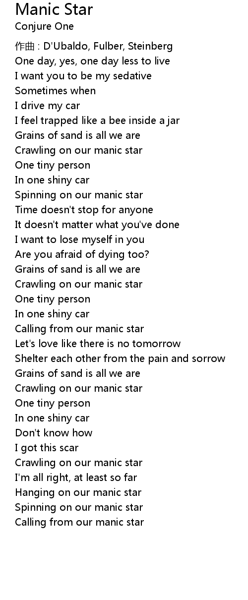 | Hanging on our manic star | |