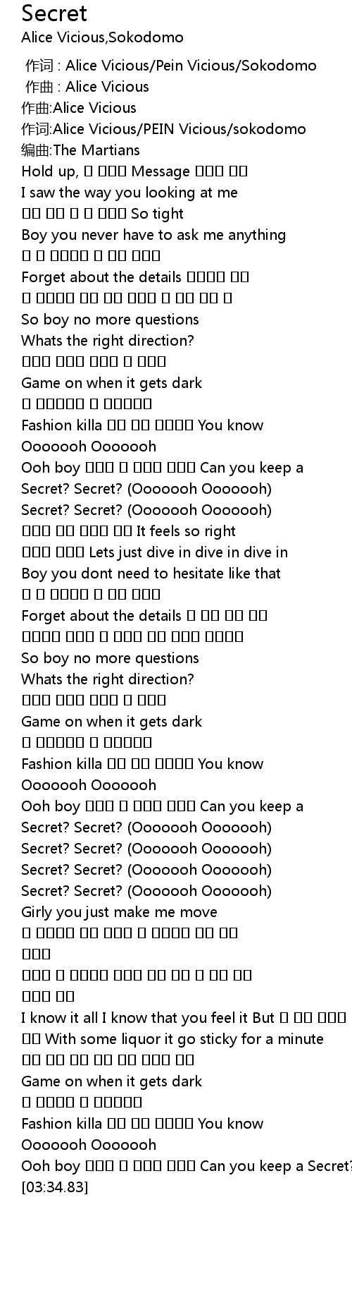 | [02:31.95] | Secret? Secret? Ooooooh Ooooooh |