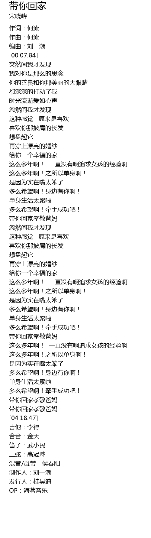 | [04:14.47] | 带你回家孝敬爸妈 |