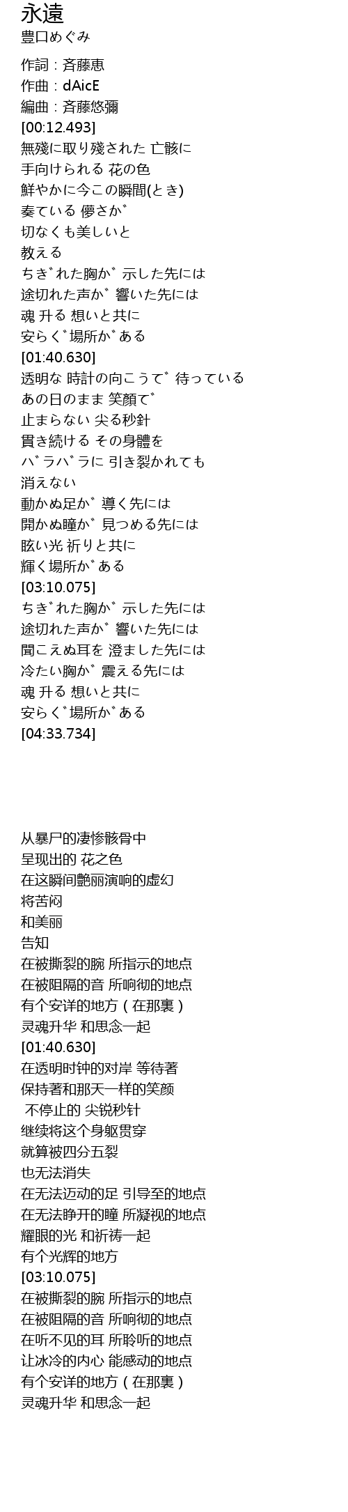 | [02:46.879] | 開かぬ瞳が 見つめる先には |