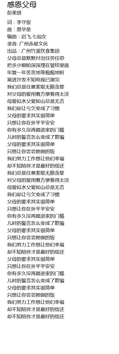 | [00:31.09] | 父母总是默默付出任劳任怨 |