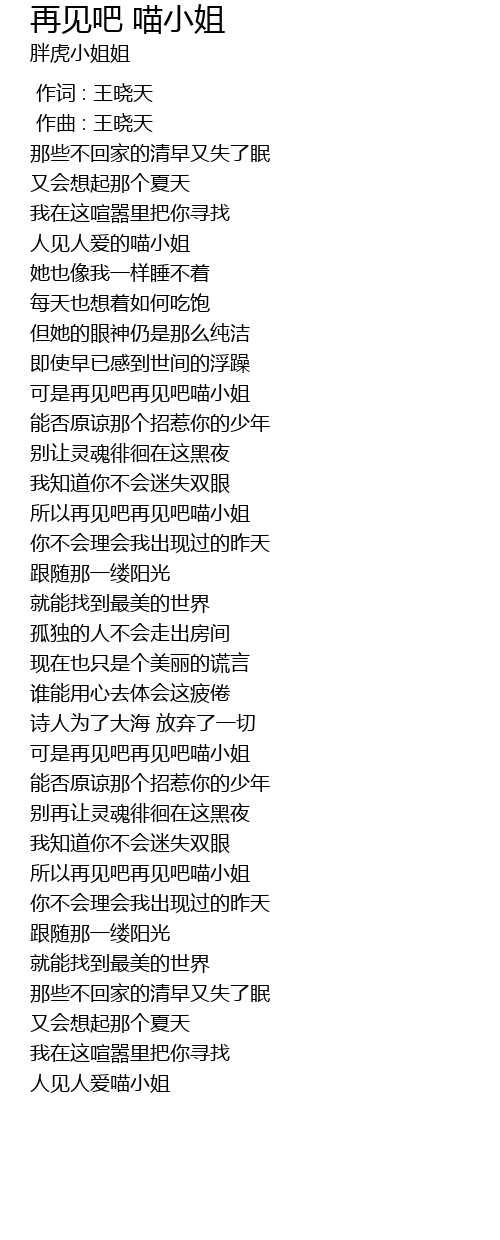 | [00:54.880] | 可是再见吧再见吧喵小姐 |
