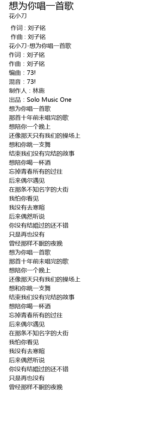 | [00:00.95] | 花小刀-想为你唱一首歌 |