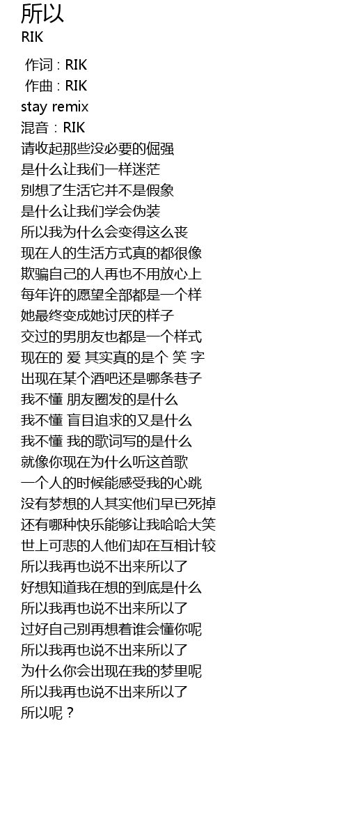 | [01:28.857] | 所以我再也说不出来所以了 |