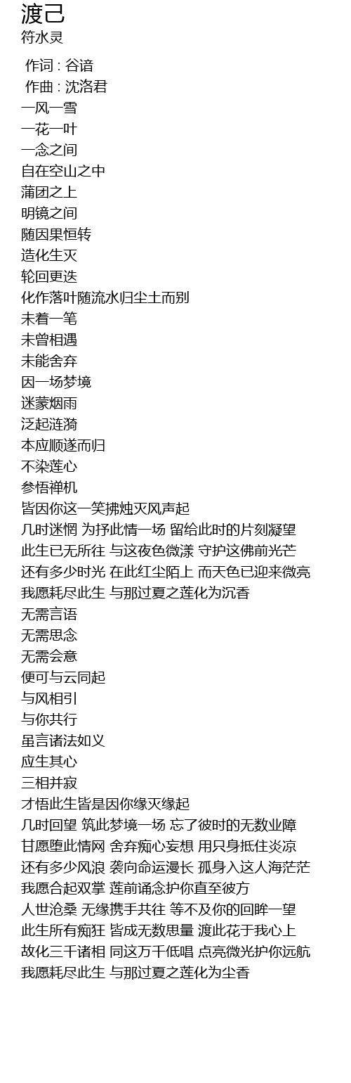 | [01:34.649] | 此生已无所往 与这夜色微漾 守护这佛前光芒 |