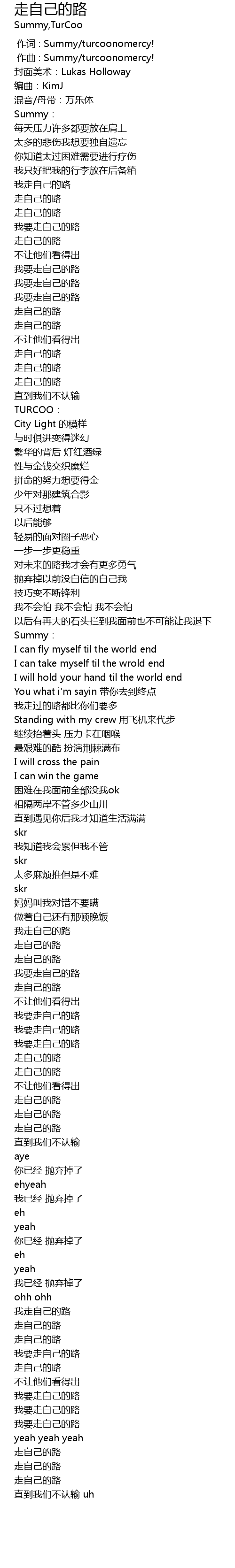| [00:34.474] | wǒ yào zǒu zì jǐ de lù |