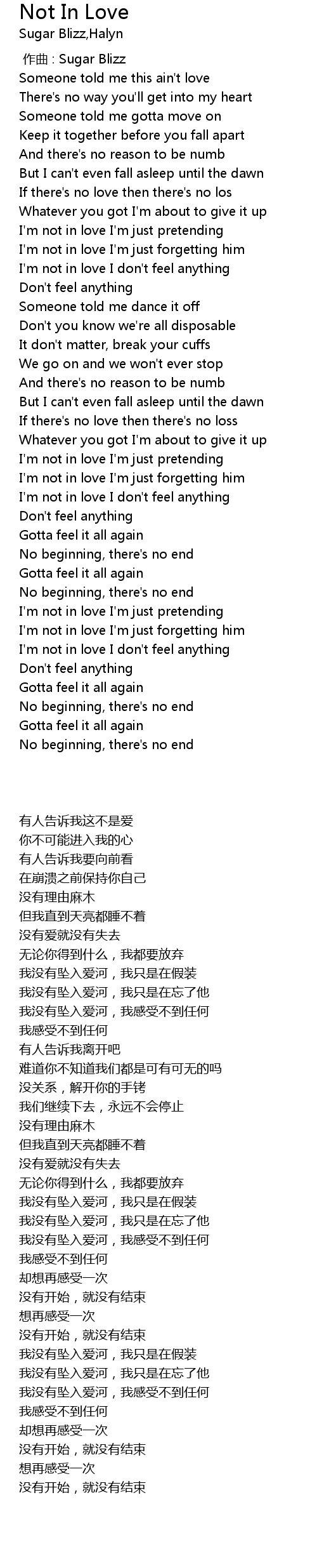 | [00:50.87] | I' m not in love I don' t feel anything |