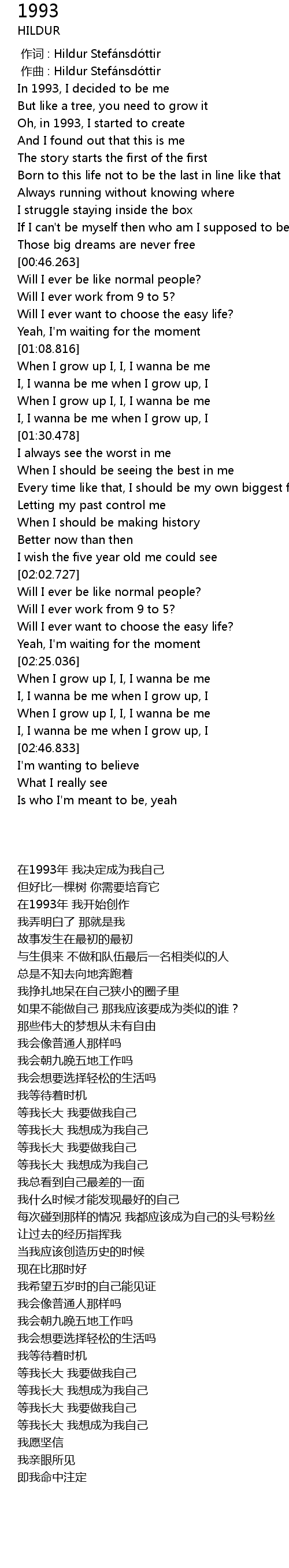 | [01:20.137] | When I grow up I, I, I wanna be me |