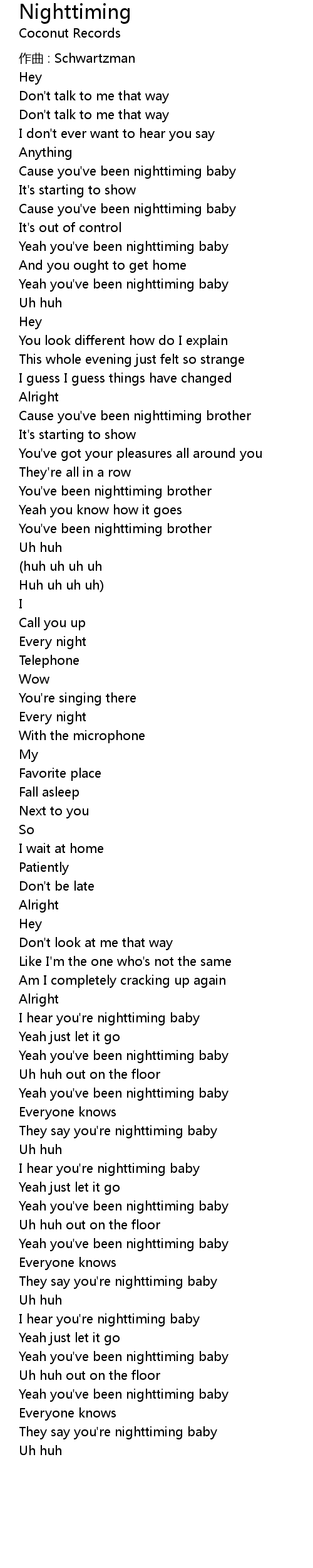| Yeah you' ve been nighttiming baby | |