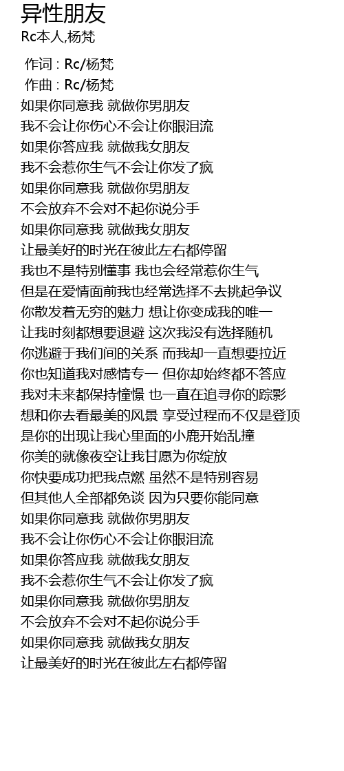 | [01:44.040] | 如果你同意我 就做你男朋友 |