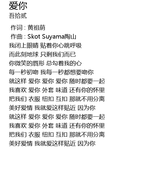 | [00:44.933] | 我喜欢 爱你 外套 味道 还有你的怀里 |