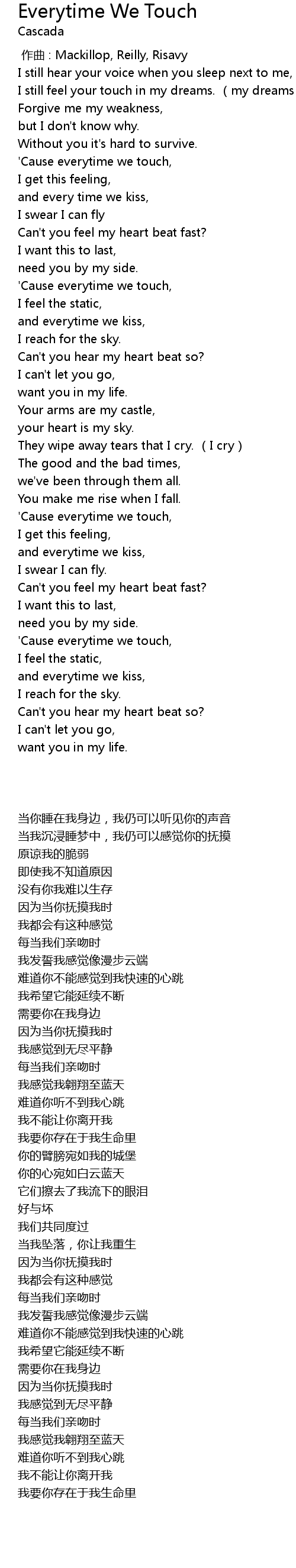| [00:30.540] | 'Cause everytime we touch, |