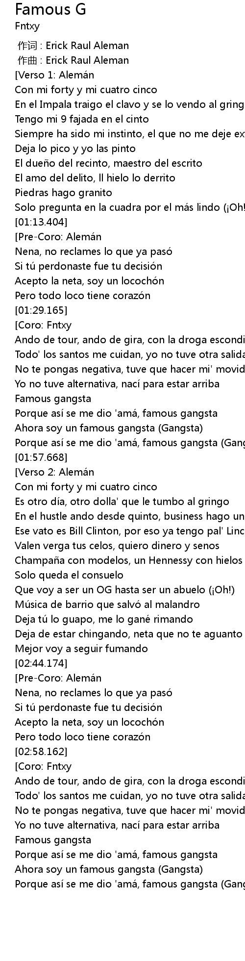 | [01:49.906] | Ahora soy un famous gangsta Gangsta |