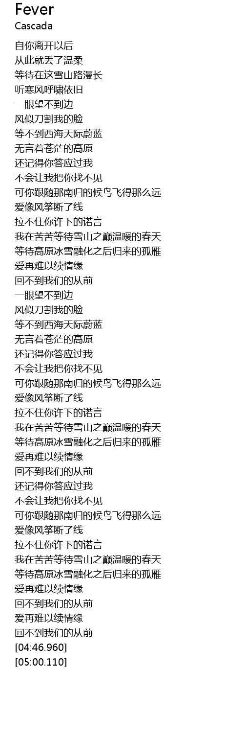 | [04:24.370] | 爱再难以续情缘 |