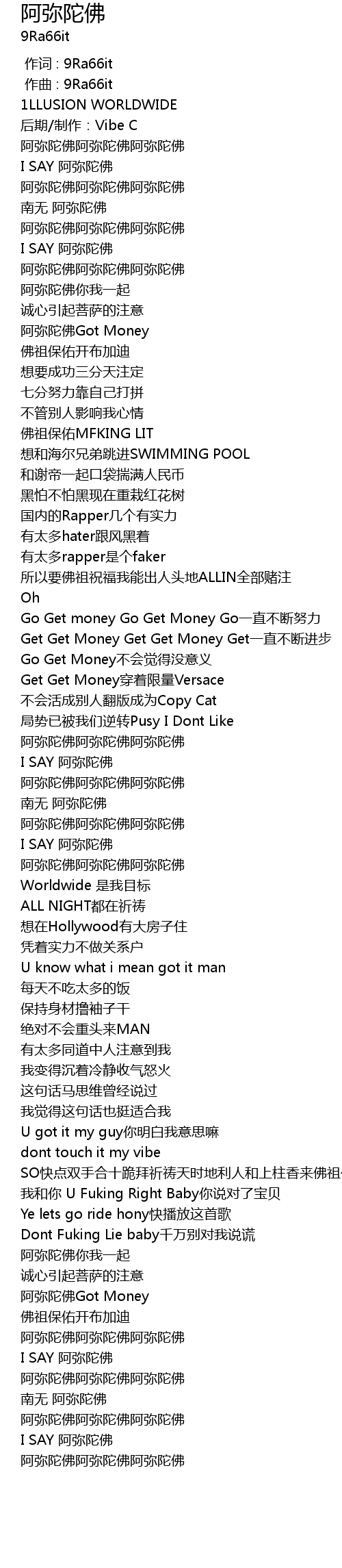 | [01:31.999] | I SAY 阿弥陀佛 |
