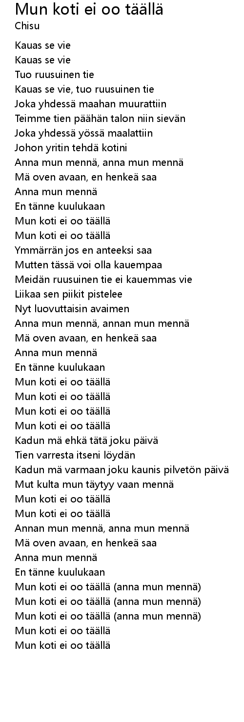 | Mun koti ei oo täällä (anna mun mennä) | |