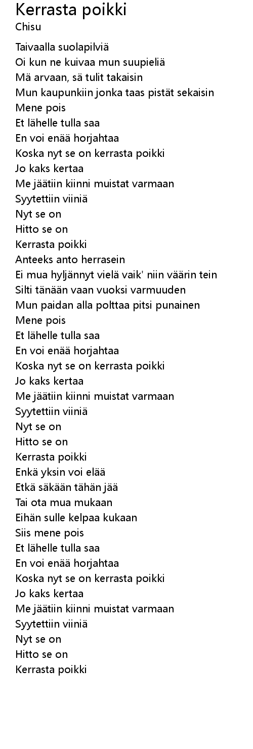 | Ei mua hyljännyt vielä vaik' niin väärin tein | |
