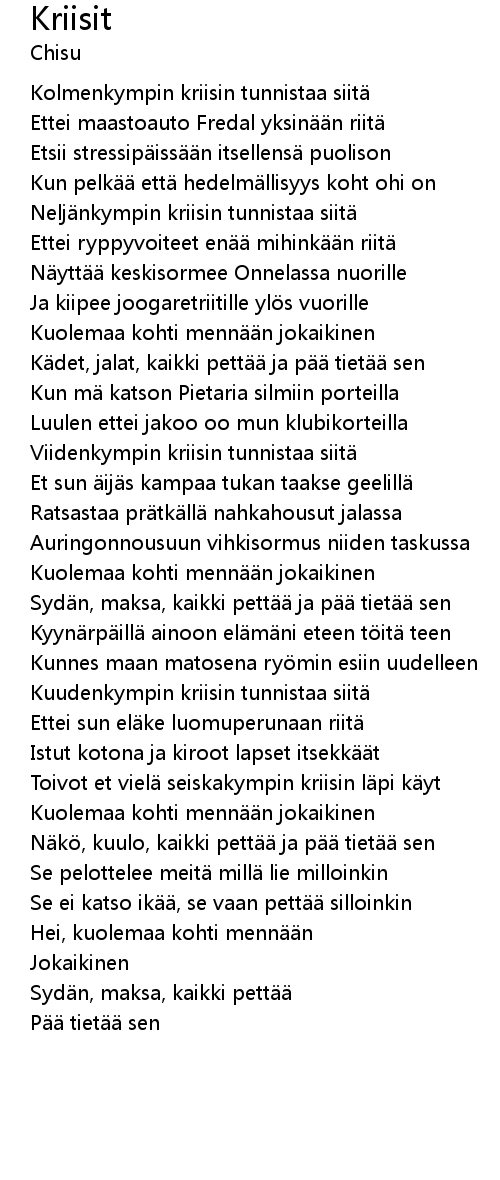 | Song | Kriisit |
