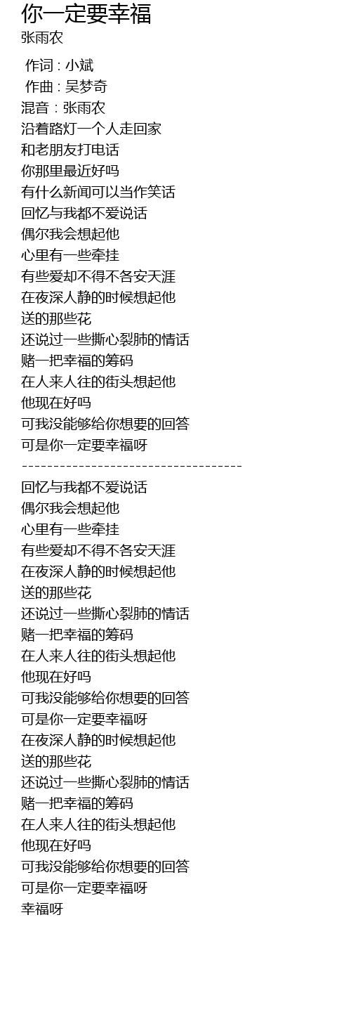 | [03:06.683] | kě shì nǐ yí dìng yào xìng fú ya |