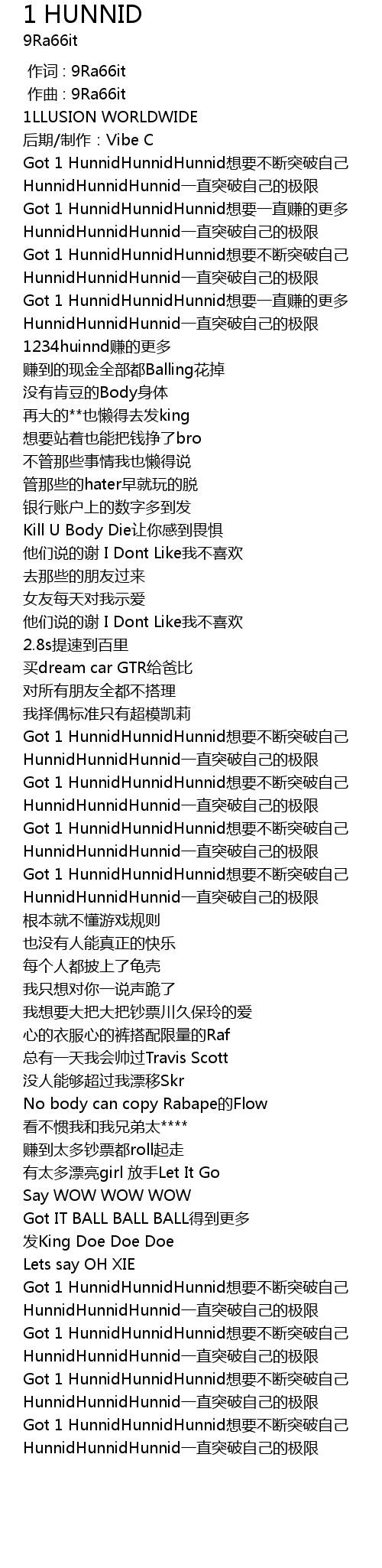 | [01:33.522] | HunnidHunnidHunnid一直突破自己的极限 |