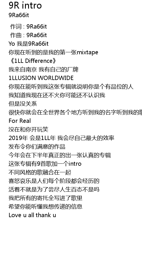 | [00:00.000] | 作词 : 9Ra66it |