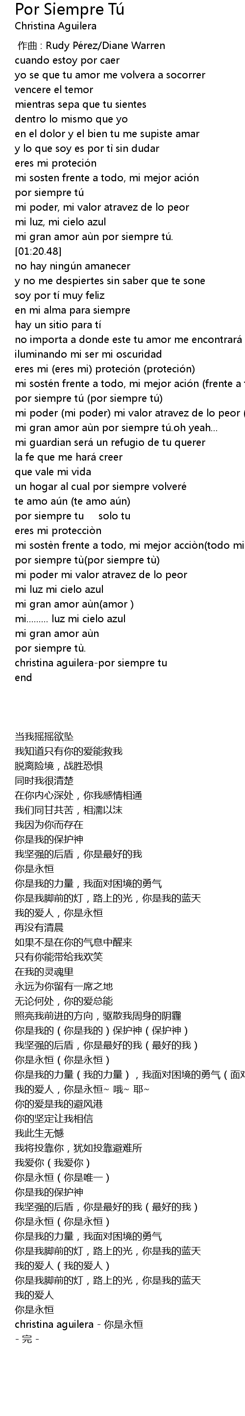 | [02:34.34] | mi gran amor aùn por siempre tú.oh yeah... |