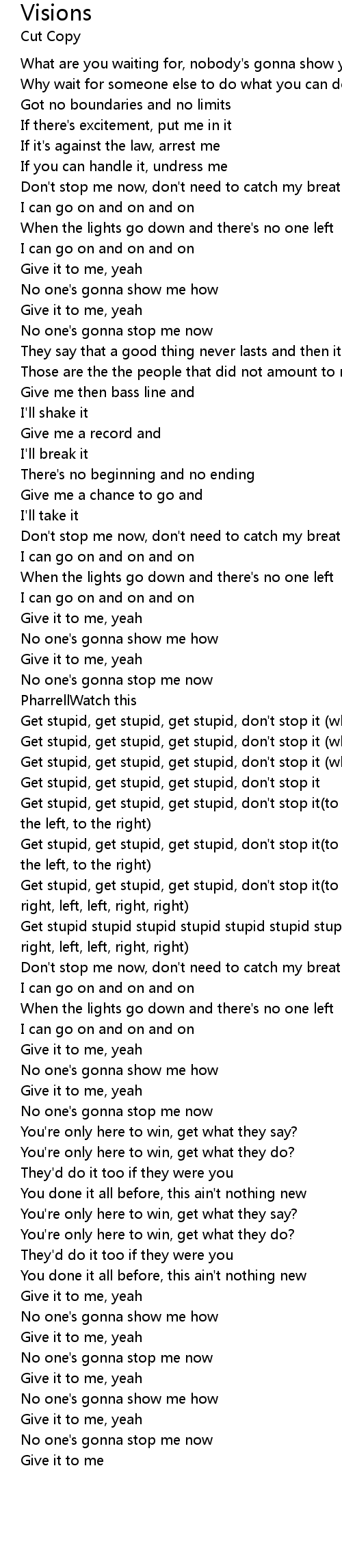 Get stupid, get stupid, get stupid, don't stop it(to the left, left, right, right, left, left, right, right) |
