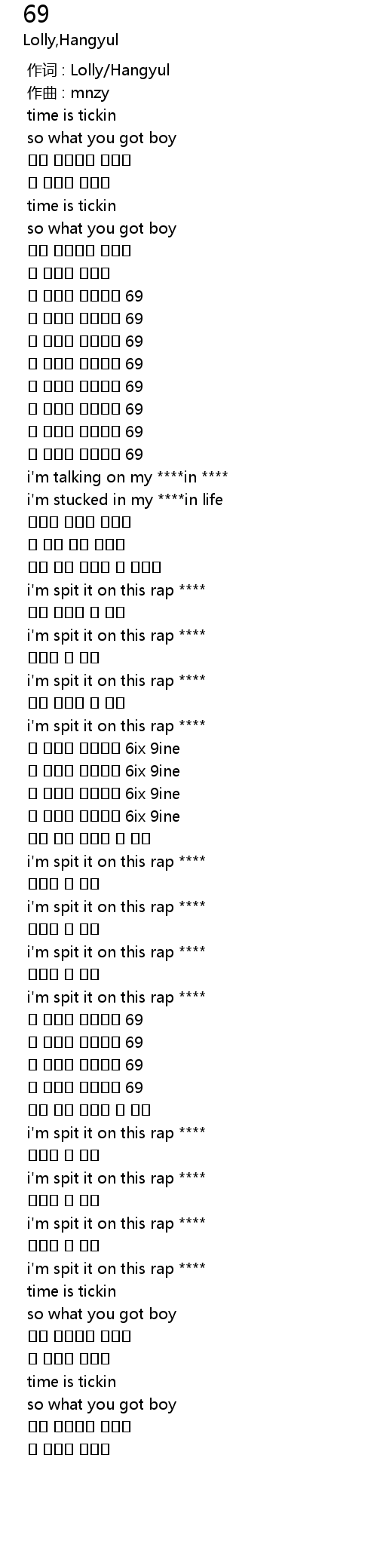 | [01:34.177] | 난 비트와 오랄하는 69 |