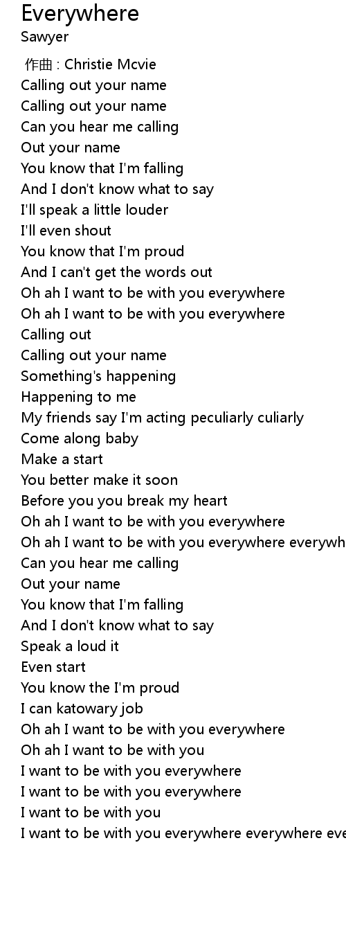 | [02:43.87] | I want to be with you everywhere everywhere everywhere |