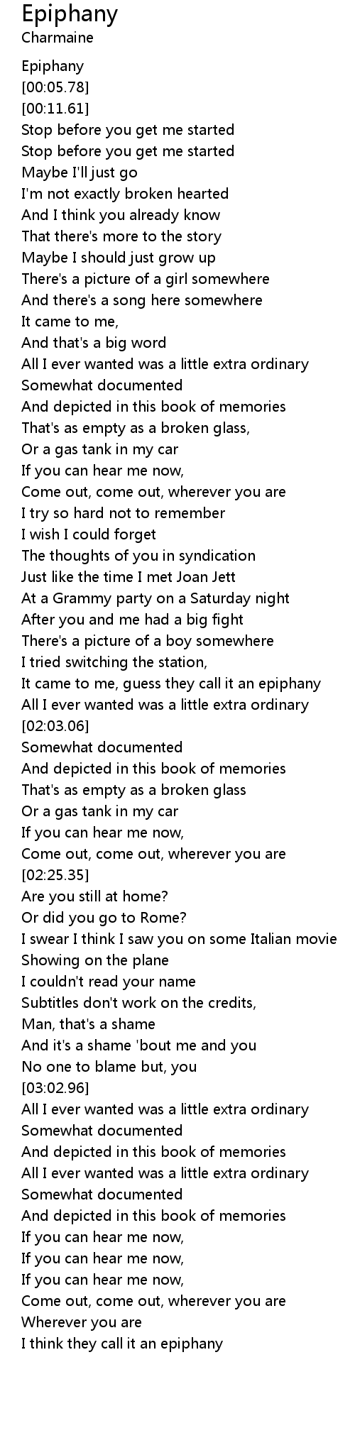 It came to me, guess they call it an epiphany |