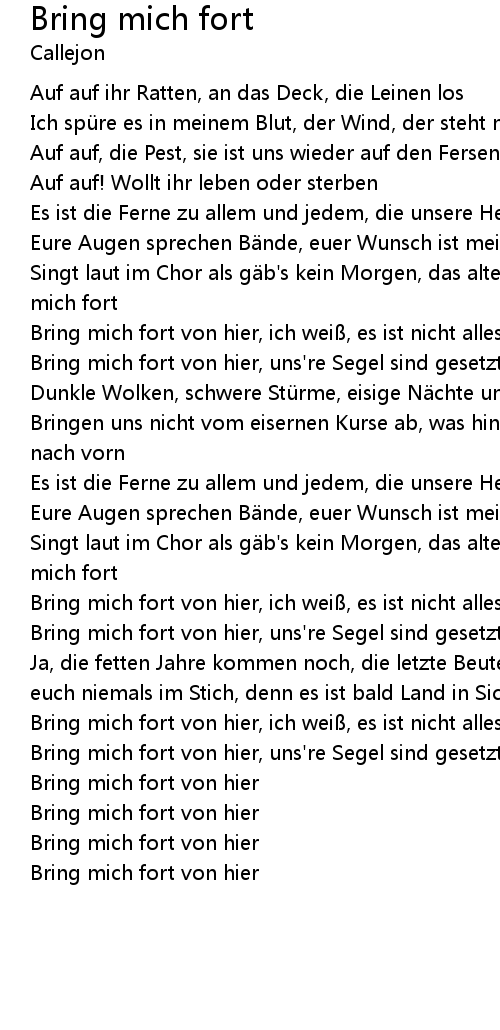 | Singt laut im Chor als g b' s kein Morgen, das alte Lied vom Meer, bitte bring mich fort | |
