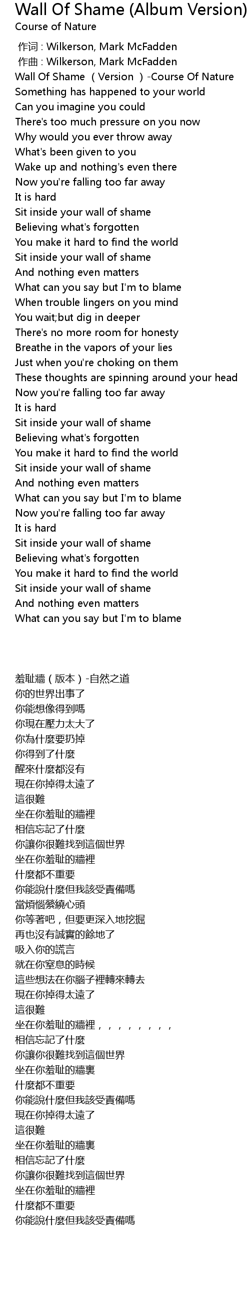 | [00:00.00] | Wall Of Shame Version Course Of Nature |