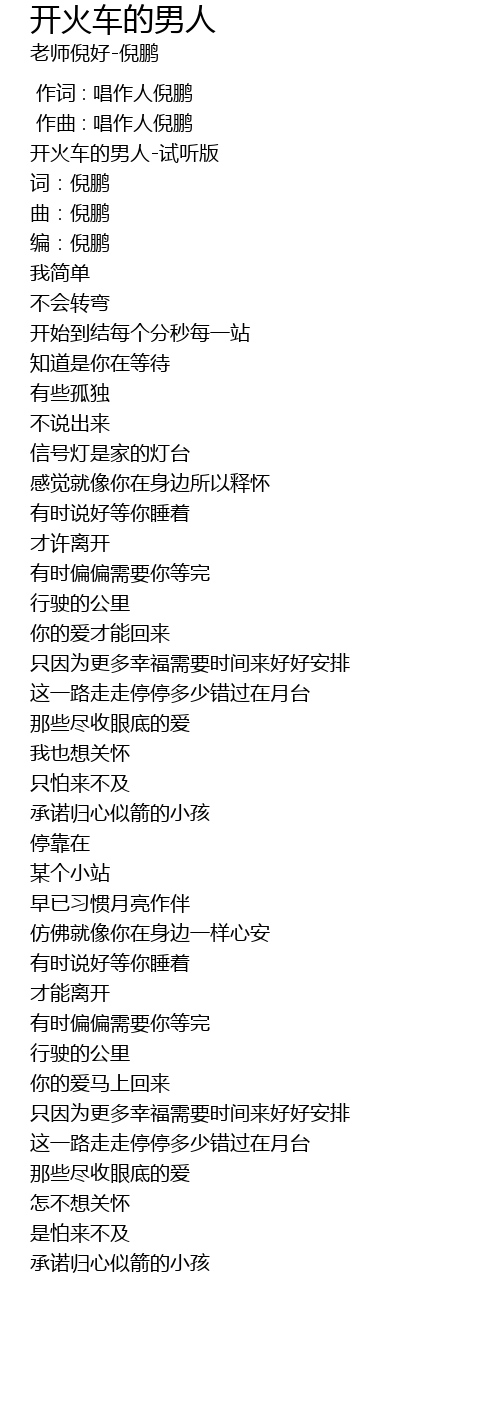 | [00:00.000] | 作词 : 唱作人倪鹏 |