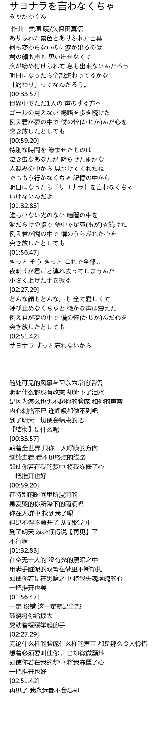 | [02:51.67] | サヨナラ ずっと忘れないから |