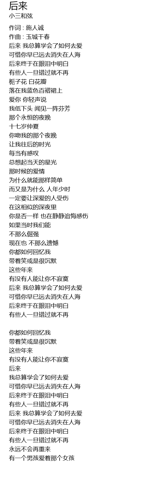 | hòu lái zhōng yú zài yǎn lèi zhōng míng bái | |