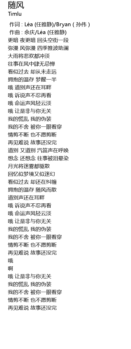 | [00:00.000] | 作词 : Léa (任雅静)/Bryan(孙伟) |