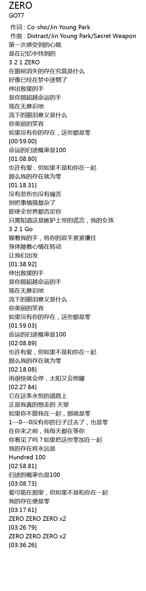 | [03:22.55] | ZERO ZERO ZERO x2 |