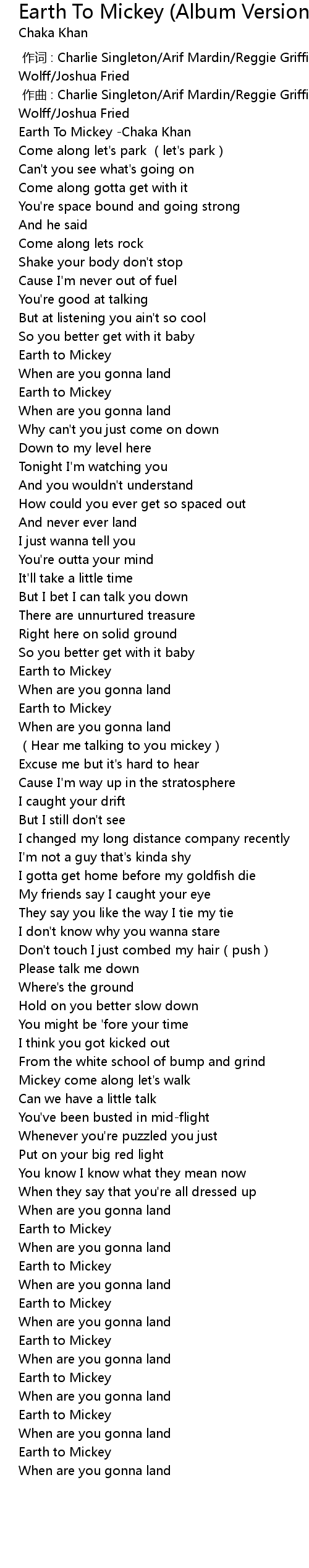 | [00:00.00] | Earth To Mickey Chaka Khan |