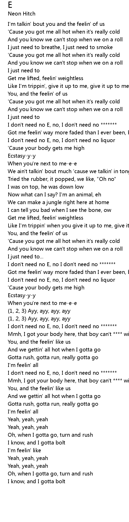[01:58.49] I don't need no E, no, I don't need no liquor