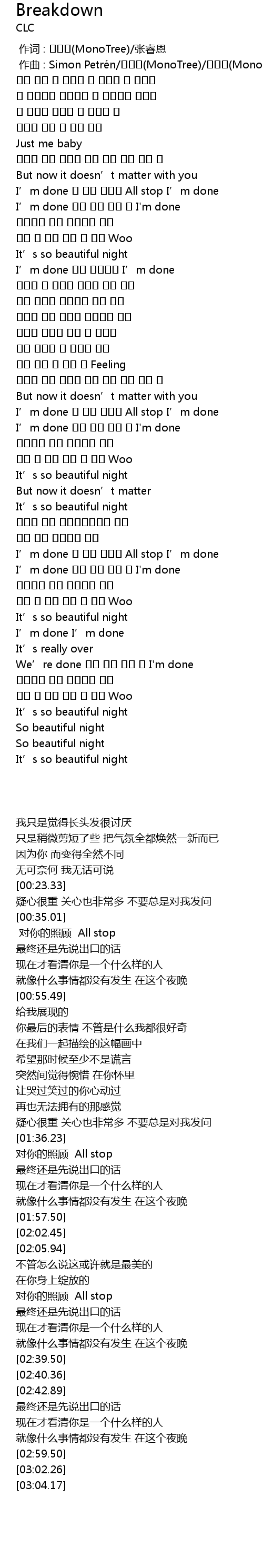 | [02:19.72] | I' m done All stop I' m done |