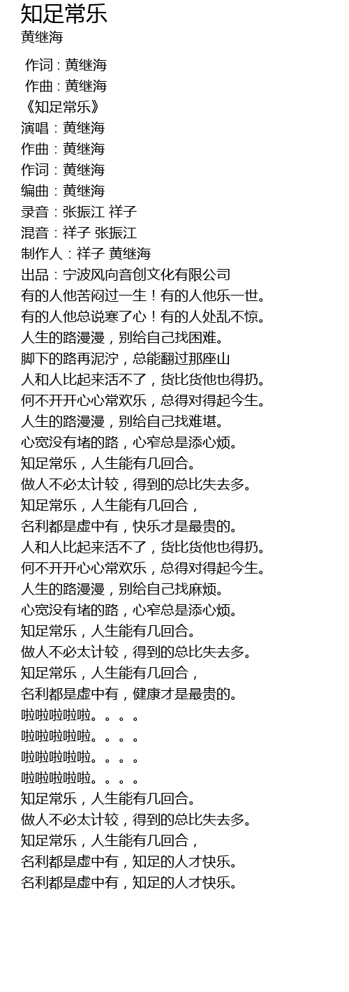 | [03:41.083] | míng lì dōu shì xū zhōng yǒu, zhī zú de rén cái kuài lè. |