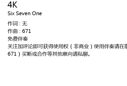 | 免费伴奏 关注加评论即可获得使用权(非商业)使用伴奏请在歌名后标注(prod.by 671)买断或合作等其他意向请私聊。 |